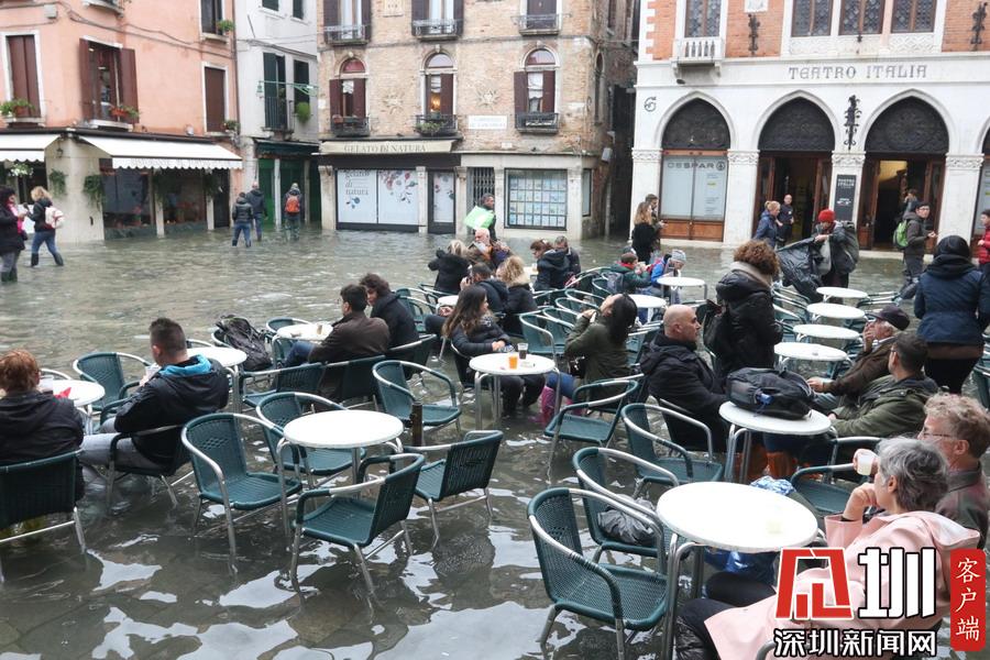 威尼斯水位再度觸及1.5米 游客水中用餐沉船書店持續(xù)被淹