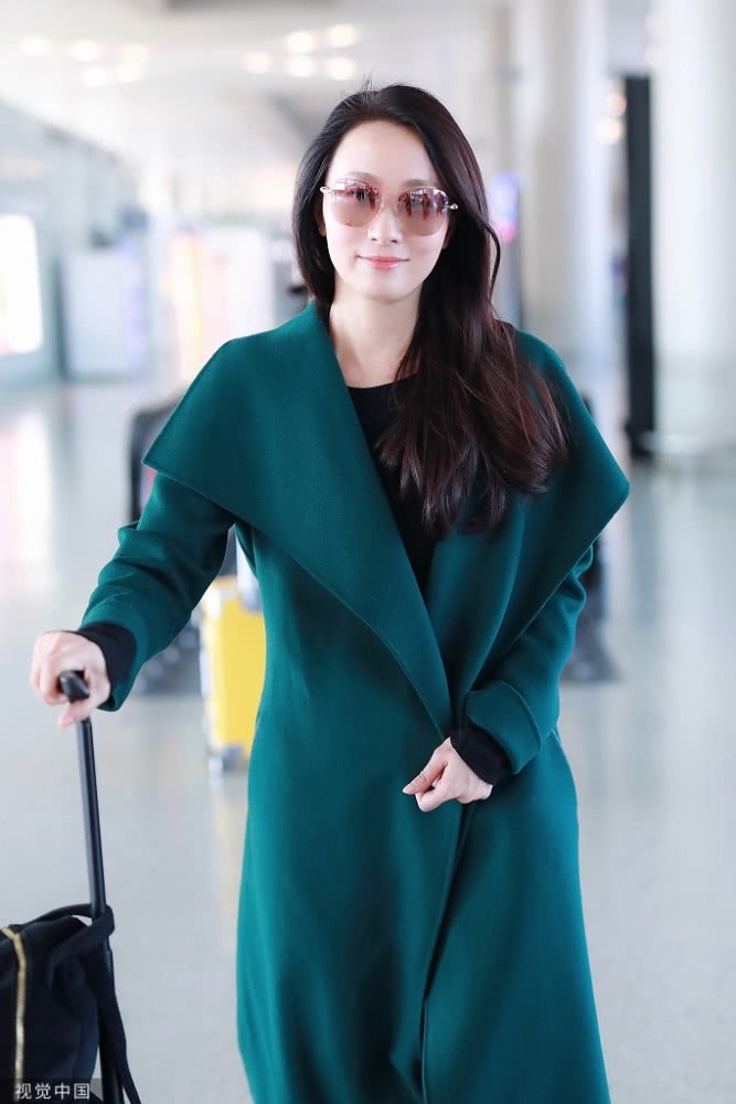 當天,陶虹身穿一件深綠色的大衣,長發(fā)披肩笑容親切,內(nèi)搭一件黑色緊身衣,腳踩一雙黑色的毛絨拖鞋,居家范兒十足。