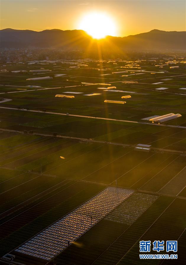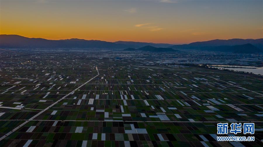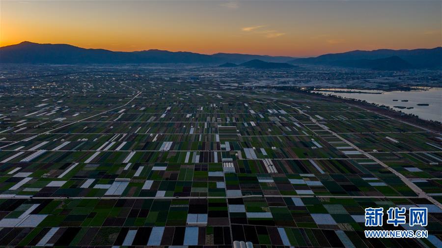 這是云南省玉溪市通??h的田園風(fēng)光(11月23日無人機拍攝)。初冬時節(jié),云南省玉溪市通海縣風(fēng)景秀麗,山巒、湖水與農(nóng)田組成了一幅美麗的田園詩畫卷。新華社記者胡超攝