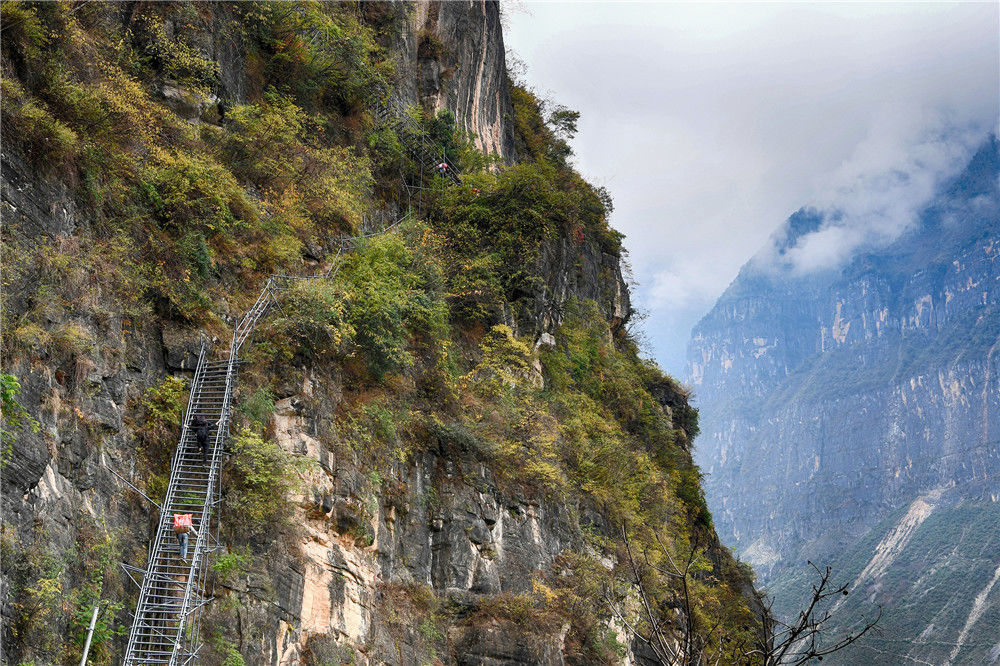 2019年11月16日,四川涼山,昭覺(jué)縣支爾莫鄉(xiāng)阿土列爾村的“鋼管天梯”。