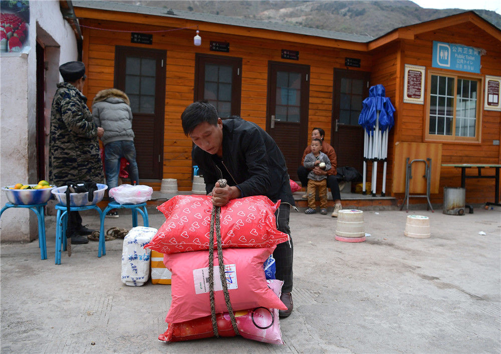 由于道路問(wèn)題,村民養(yǎng)殖的牲口都運(yùn)不到山下,基本都是自產(chǎn)自銷(xiāo)。村民把產(chǎn)量有限的花椒和核桃背到山下,換回日用品和少量的現(xiàn)金,村民普遍處于貧困線下。圖片來(lái)源:視覺(jué)中國(guó)