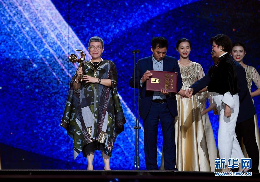 11月23日,電影《地久天長》主演詠梅獲得最佳女主角獎。 當日,第32屆中國電影金雞獎頒獎典禮在福建廈門舉行。 新華社記者姜克紅攝