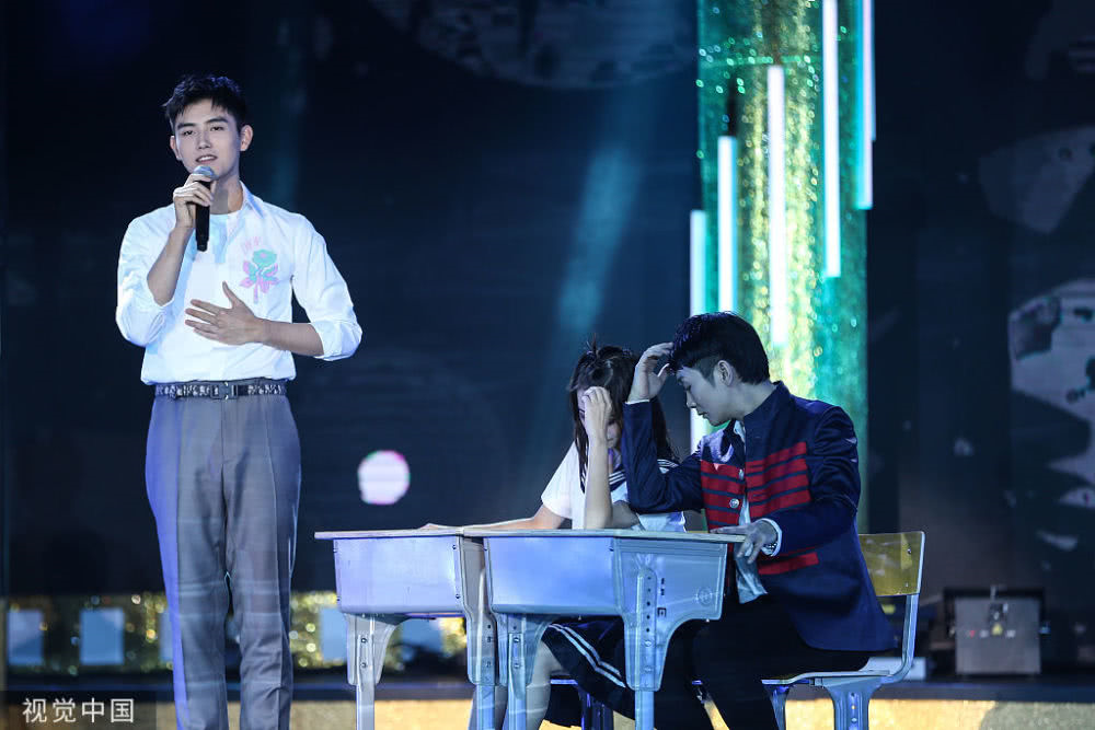 黃軒登臺發(fā)言,鞠躬盡顯禮節(jié)。