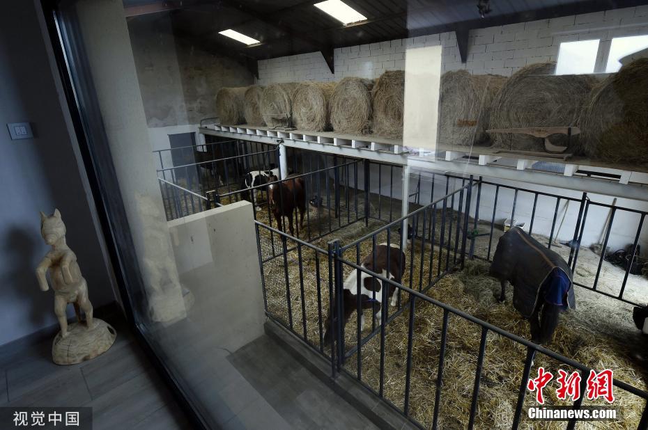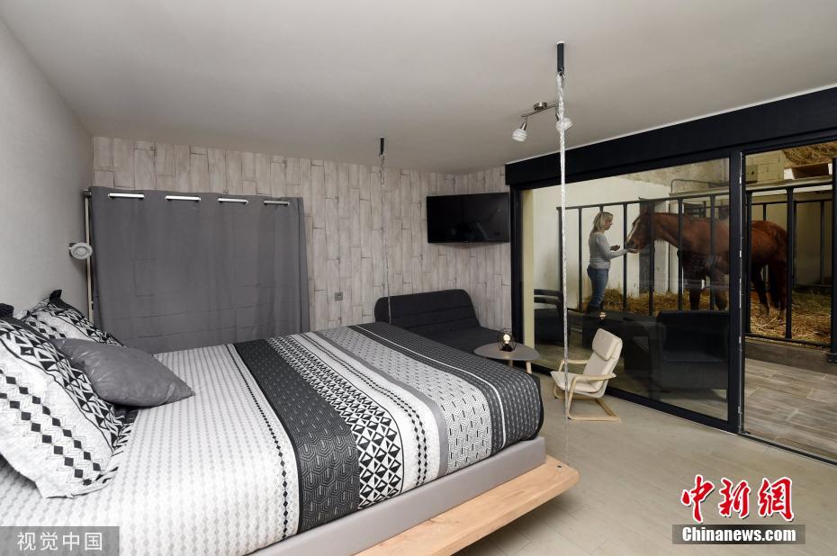 當(dāng)?shù)貢r(shí)間2019年11月25日,法國(guó)桑圖瓦地區(qū)弗賴斯內(nèi),一家特別的“酒店”開(kāi)張,入住者可以透過(guò)玻璃清楚的看到馬廄里的馬,還可以跟馬親密接觸。圖片來(lái)源:視覺(jué)中國(guó)