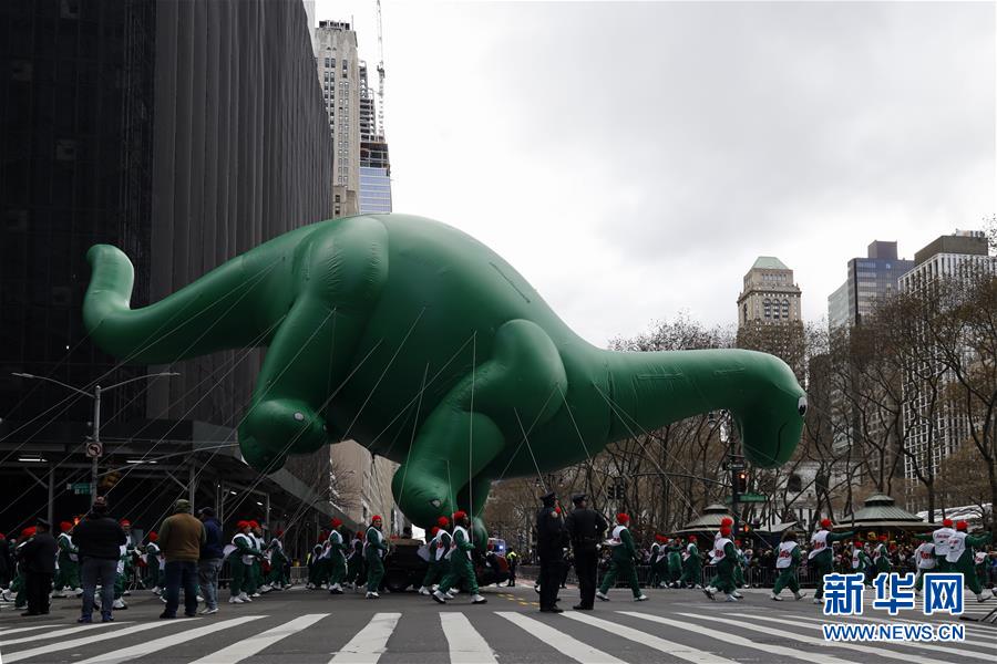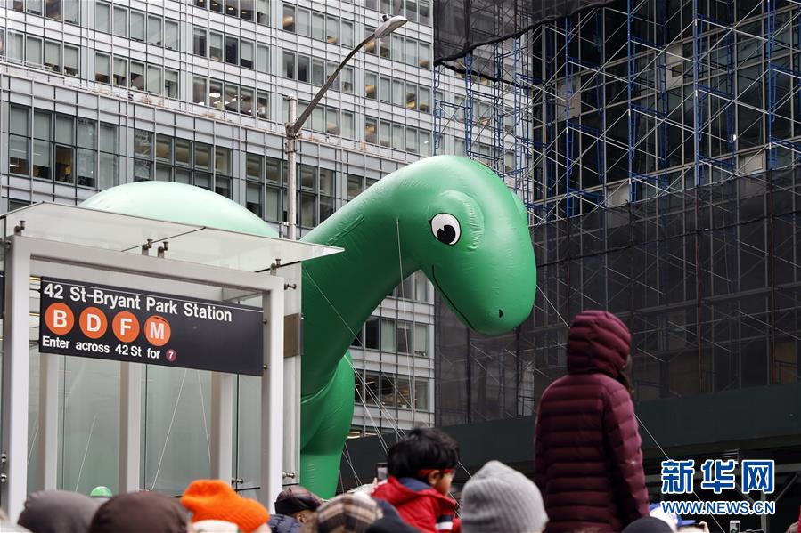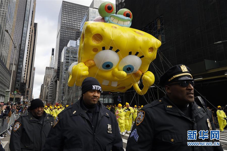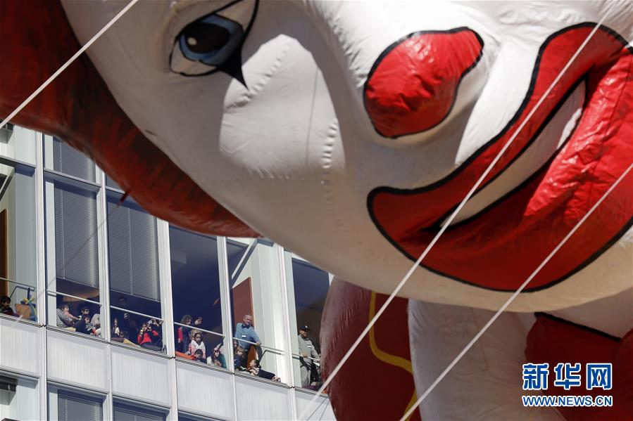 11月28日,在美國紐約舉行的感恩節(jié)大游行上,卡通氣球行進在曼哈頓街頭。 新華社記者 李木子 攝