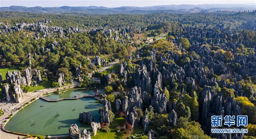 11月28日,空中俯瞰石林景區(qū)(無人機(jī)拍攝)。新華社記者江文耀攝