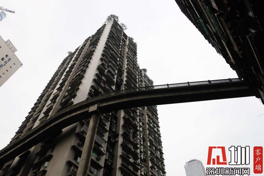2018年4月11日,重慶市渝中區(qū)東營街,一座人行天橋離地40米,在半空中呈“S型”繞樓而過,好似一條飛揚(yáng)的絲帶。該天橋橋面寬約2米,長約70米,連接大陽溝派出所和鑫龍大廈的13樓,中間僅靠一根水泥墩支撐。