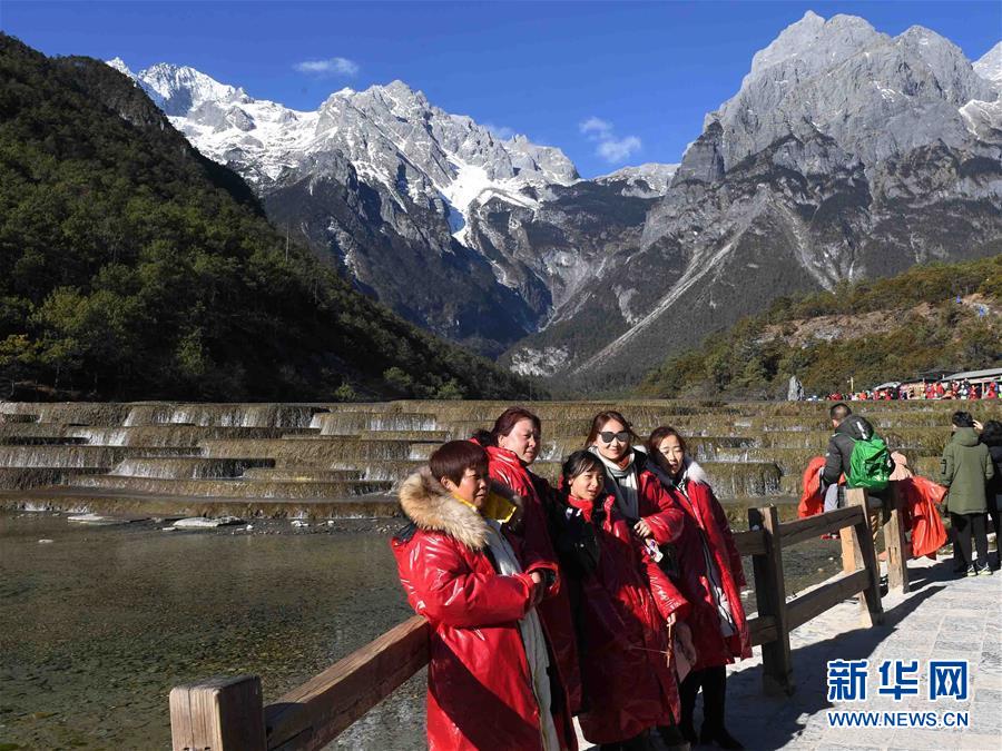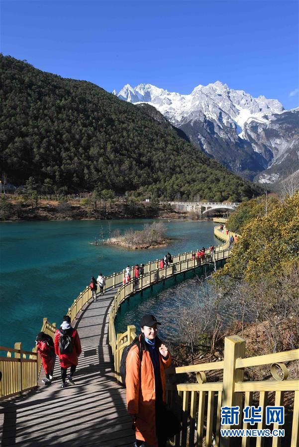 初冬的云南省麗江玉龍雪山景色秀美,吸引游客前來(lái)觀光。