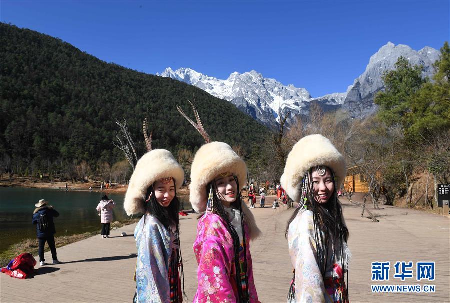 冬季,云南省麗江玉龍雪山景色秀美壯觀,吸引了眾多游客。