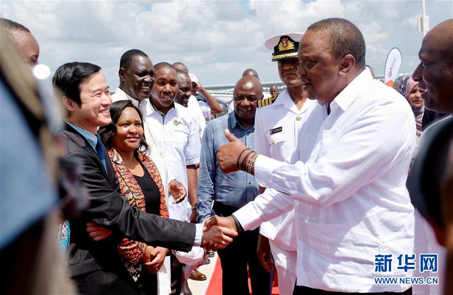 12月13日,在肯尼亞加里薩郡,肯尼亞總統烏胡魯·肯雅塔(右)出席光伏發(fā)電站投運啟動儀式。 中企承建的東非最大光伏電站肯尼亞加里薩50兆瓦光伏發(fā)電站13日正式投入運營。肯尼亞總統肯雅塔在投運啟動儀式上致辭說,這一電站將為加里薩帶來穩(wěn)定供電,助力當地經濟發(fā)展。 新華社記者 楊臻 攝