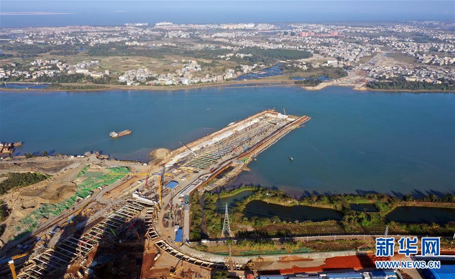正在施工的??谖拿鳀|越江通道項(xiàng)目(12月14日無(wú)人機(jī)拍攝)。 新華社記者 郭程 攝