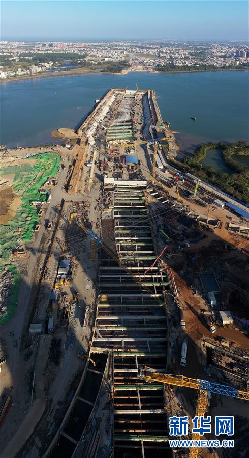 正在施工的??谖拿鳀|越江通道項目(12月14日無人機拍攝)。 新華社記者 郭程 攝