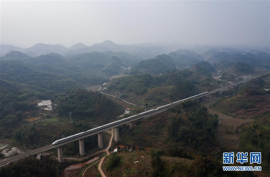 12月16日,一列動(dòng)車組列車從成貴高鐵西溪河大橋上駛過。新華社記者楊文斌攝