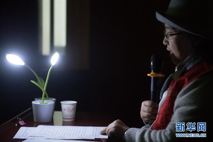 4月11日,吳素環(huán)在中國(guó)盲文圖書(shū)館桐廬縣支館為視障人士解說(shuō)電影《可可西里》。65歲的桐廬老人吳素環(huán)是一名進(jìn)行性肌萎縮癥患者,也是一名無(wú)障礙電影解說(shuō)志愿者,自2015年起已為當(dāng)?shù)匾暳φ系K者解說(shuō)四部電影,每部電影上萬(wàn)字的解說(shuō)詞都由她自己寫(xiě)成。新華社記者翁忻旸攝