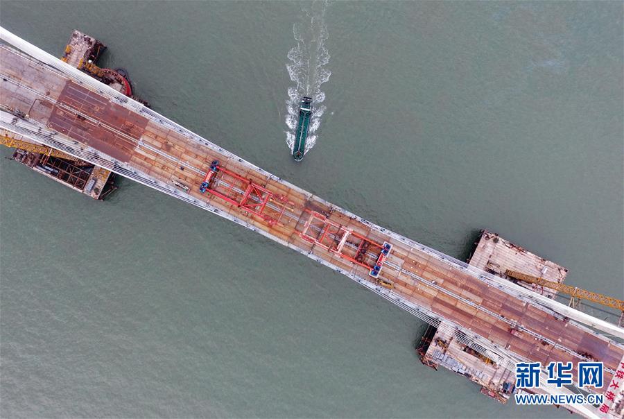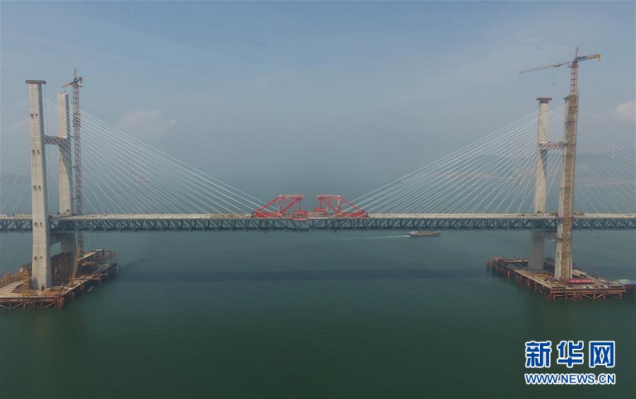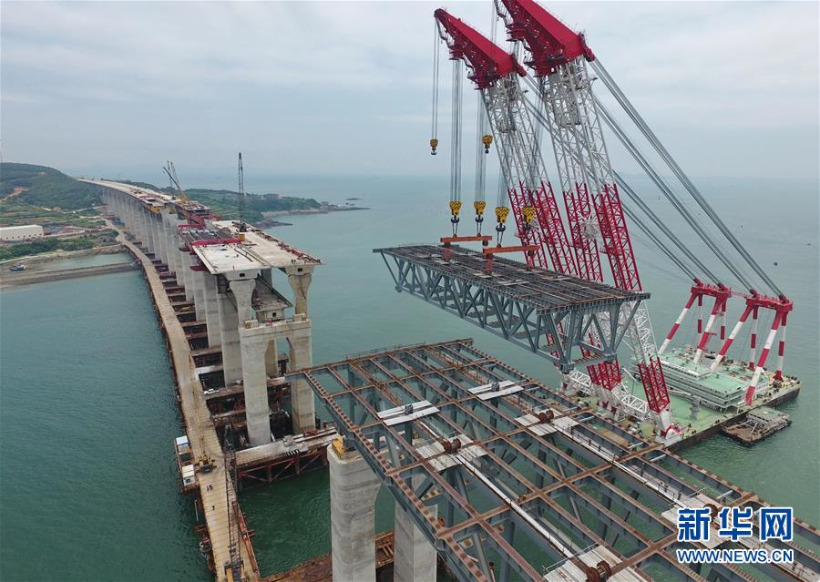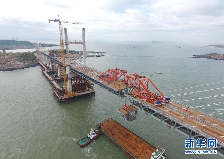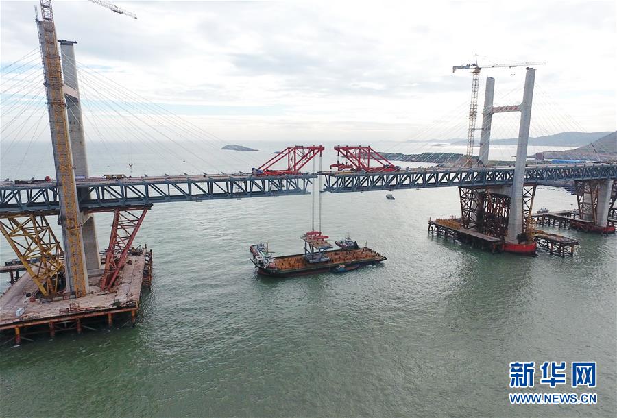 9月21日,平潭海峽公鐵大橋鼓嶼門(mén)航道橋的鋼桁梁在吊裝中(無(wú)人機(jī)拍攝)。9月25日上午,隨著一段長(zhǎng)17米、重473噸的鋼桁梁被精確固定到位,總長(zhǎng)16.34公里的平潭海峽公鐵大橋合龍貫通。平潭海峽公鐵大橋是福州至平潭鐵路控制性工程,也是“十三五”規(guī)劃中北京至臺(tái)灣高鐵的先期工程。大橋起于福州市長(zhǎng)樂(lè)區(qū),“踏”過(guò)四座小島后抵達(dá)中國(guó)第五大島平潭,上層設(shè)計(jì)為時(shí)速100公里的六車道高速公路,下層為設(shè)計(jì)時(shí)速200公里的高鐵。據(jù)福建福平鐵路公司介紹,大橋計(jì)劃2020年正式通車。在六年建設(shè)過(guò)程中,平潭海峽公鐵大橋所應(yīng)用研發(fā)的多項(xiàng)技術(shù)、裝備創(chuàng)下國(guó)內(nèi)外紀(jì)錄。新華社記者林善傳攝