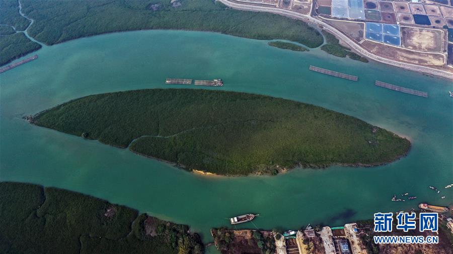 12月21日無人機(jī)拍攝的廣西合浦縣黨江鎮(zhèn)更螺圍出海口一景。冬日,廣西廉州灣海域風(fēng)光別致。新華社記者張愛林?jǐn)z