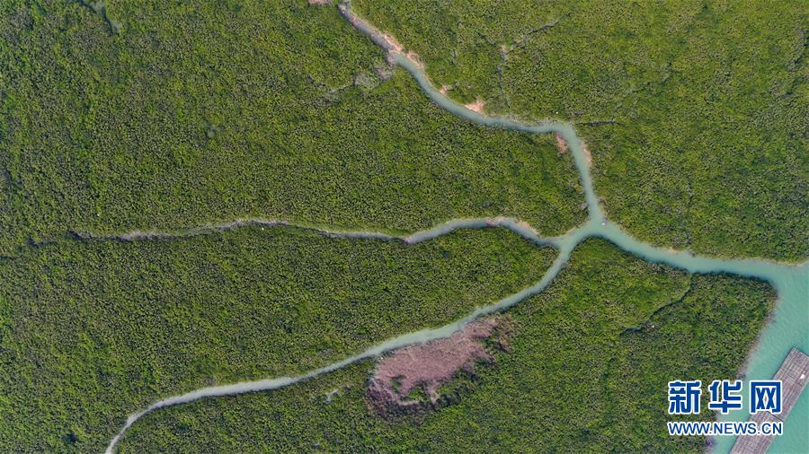 12月21日無人機拍攝的廣西合浦縣黨江鎮(zhèn)更螺圍出??谝痪?。冬日,廣西廉州灣海域風光別致。新華社記者張愛林攝