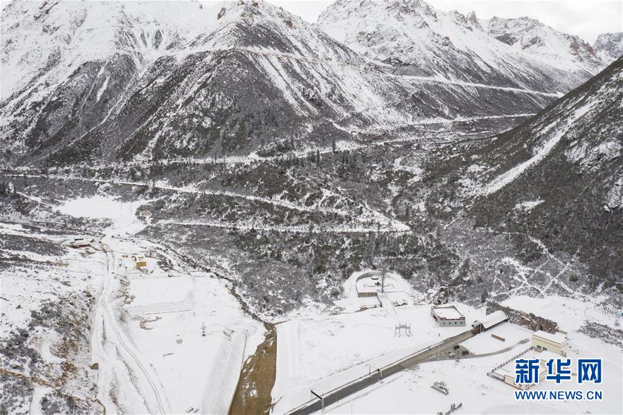 這是318國(guó)道剪子彎山段,大雪過(guò)后銀裝素裹(10月17日無(wú)人機(jī)拍攝)。新華社記者江宏景攝