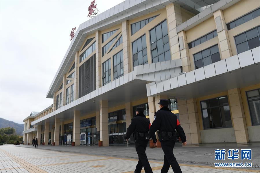 金寨火車站派出所民警鄧成成(右)與王晨旭在站內執(zhí)勤(12月19日攝)。新華社記者張端攝