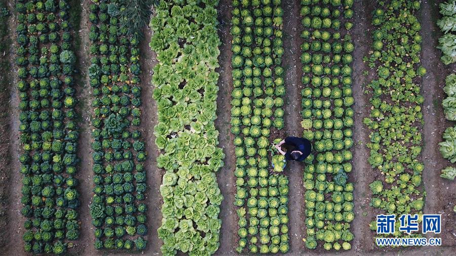 12月18日,常曉龍在菜園摘菜。警務室位于深山,平時買菜不方便,常曉龍在駐地院子里開墾了一片小菜園。新華社記者劉軍喜攝