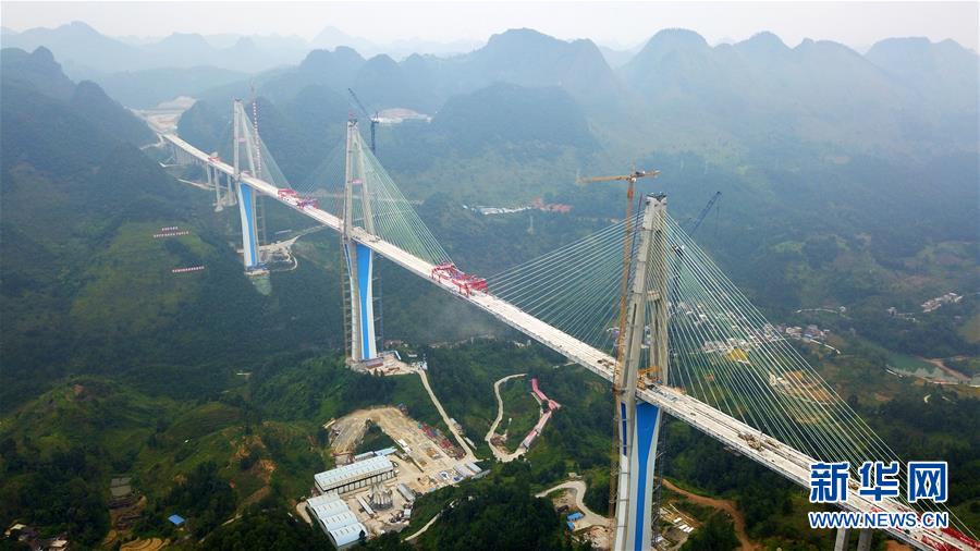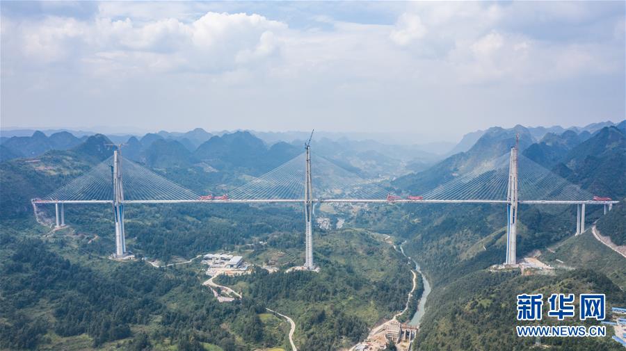 這是正在澆筑最后一方混凝土的平塘特大橋(9月26日無人機(jī)拍攝)。新華社記者陶亮攝