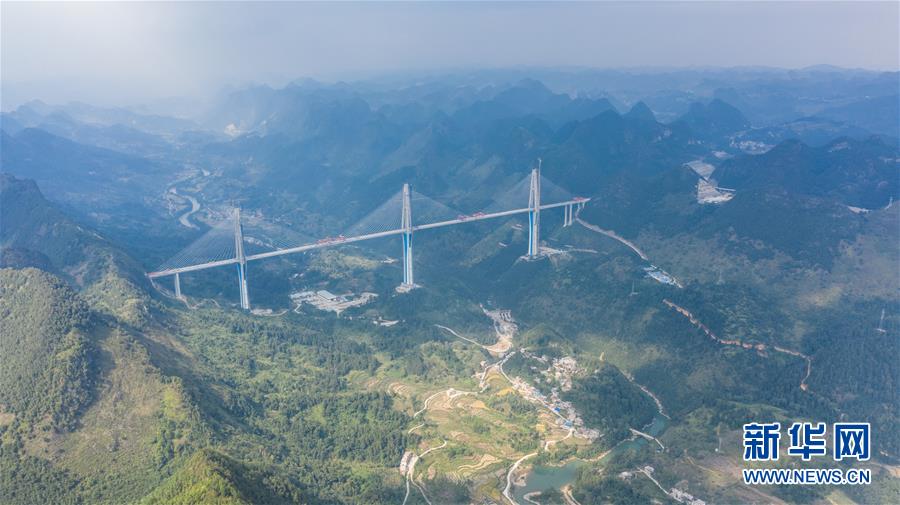 這是9月25日無人機(jī)拍攝的平塘特大橋。新華社記者陶亮攝
