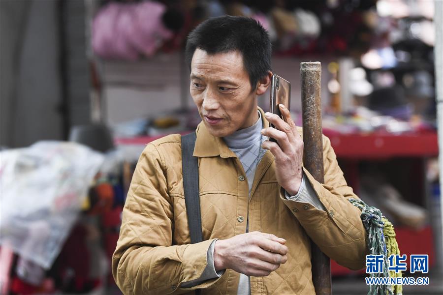 冉光輝接到一項搬運(yùn)業(yè)務(wù)的電話(1月5日攝)。新華社記者王全超攝