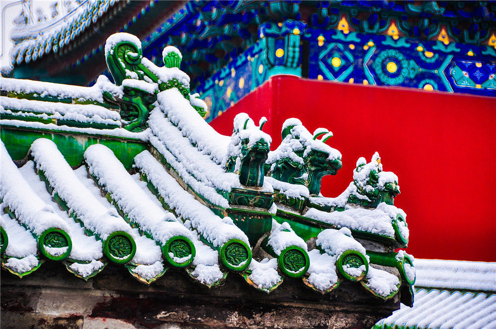 2019年11月30日,北京,初雪過(guò)后,天壇公園銀裝素裹,白雪古建相互映襯,景色迷人。時(shí)永平/千龍圖像/視覺中國(guó)