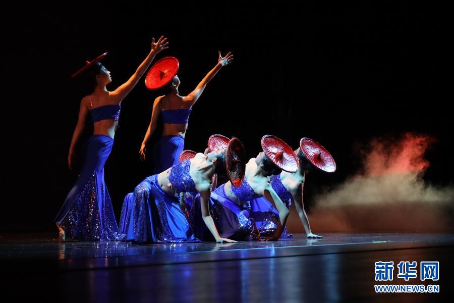 1月11日,在美國(guó)休斯敦舉辦的“擁抱春天”晚會(huì)上,演員表演傣族舞《山靈》。