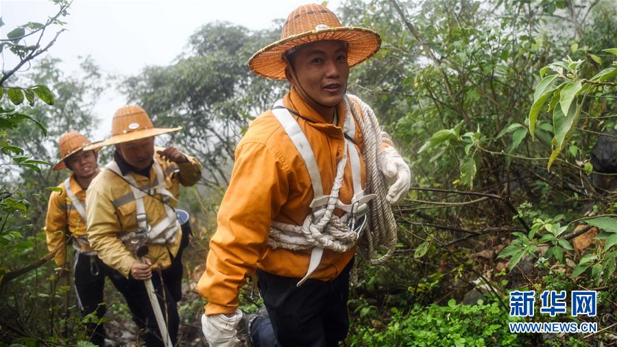 1月14日,百色工務(wù)段白水河橋隧工區(qū)班組工長(zhǎng)王勇(中)在穿戴安全裝備,準(zhǔn)備下山崖巡查。在中國(guó)鐵路南寧局集團(tuán)公司百色工務(wù)段白水河橋隧工區(qū),有一個(gè)由14名工人組成的班組。他們常年像“爬山虎”一樣行走攀爬在地形險(xiǎn)峻、云霧繚繞的高山上,負(fù)責(zé)南昆鐵路轄區(qū)路段的搜山掃石工作,清除一切可能危害鐵路行車安全的因素,保障旅客出行安全。新華社記者張愛(ài)林?jǐn)z
