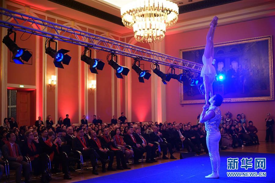 1月15日,在德國(guó)柏林,貴州省歌舞劇院藝術(shù)團(tuán)的演員在晚會(huì)上表演雜技。 15日晚,2020年“歡樂春節(jié)”新春文藝晚會(huì)在德國(guó)柏林的紅色市政廳上演,中德兩國(guó)各界代表觀看演出,共慶中國(guó)農(nóng)歷新年。 新華社記者 王勍 攝