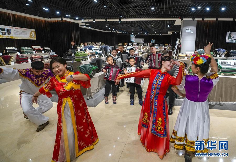 春節(jié)前夕,不少游客來到位于新疆邊境小城塔城市的手風(fēng)琴博物館參觀,了解和欣賞產(chǎn)自意大利、德國(guó)、俄羅斯等不同國(guó)家的手風(fēng)琴收藏,觀看當(dāng)?shù)匚乃噽酆谜叩木时硌荨?/p>
