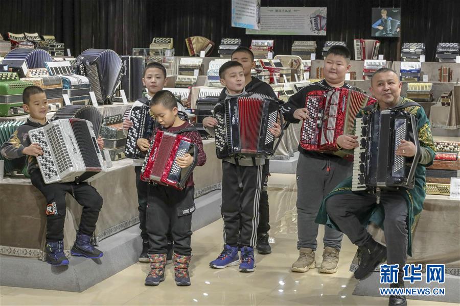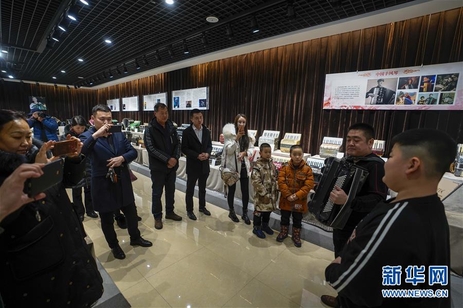 春節(jié)前夕,不少游客來到位于新疆邊境小城塔城市的手風(fēng)琴博物館參觀,了解和欣賞產(chǎn)自意大利、德國、俄羅斯等不同國家的手風(fēng)琴收藏,觀看當(dāng)?shù)匚乃噽酆谜叩木时硌荨?/p>