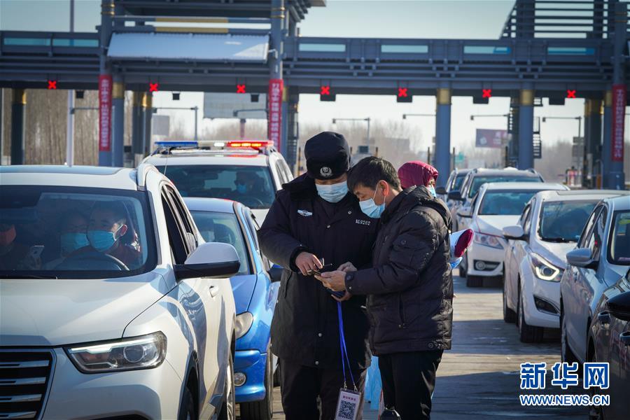 2月24日,工作人員在哈同高速公路哈爾濱收費站為車輛人員登記。 新華社記者 王松 攝