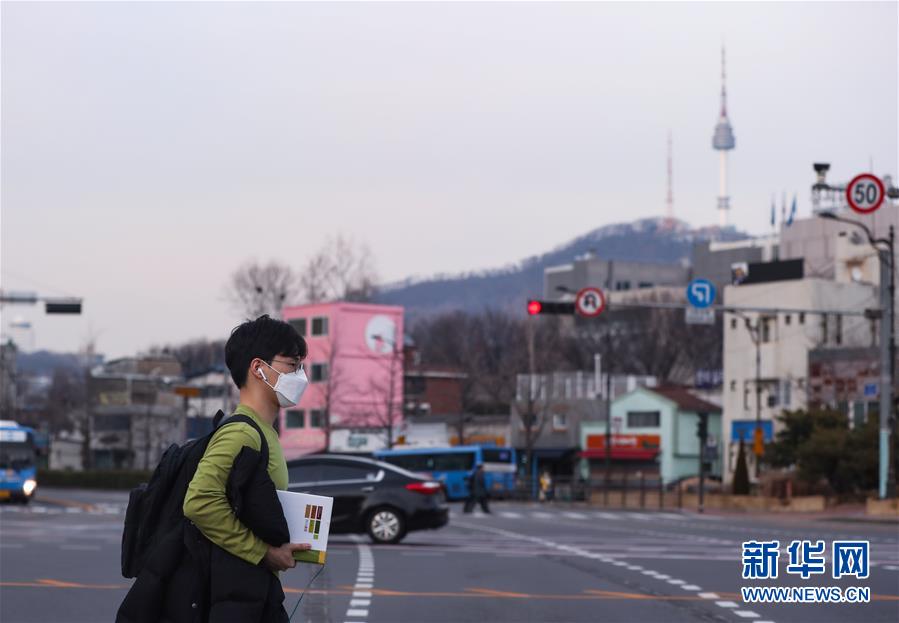2月24日,在韓國首爾,一名男子行走在龍山區(qū)的道路上。  新華社記者 王婧嬙 攝