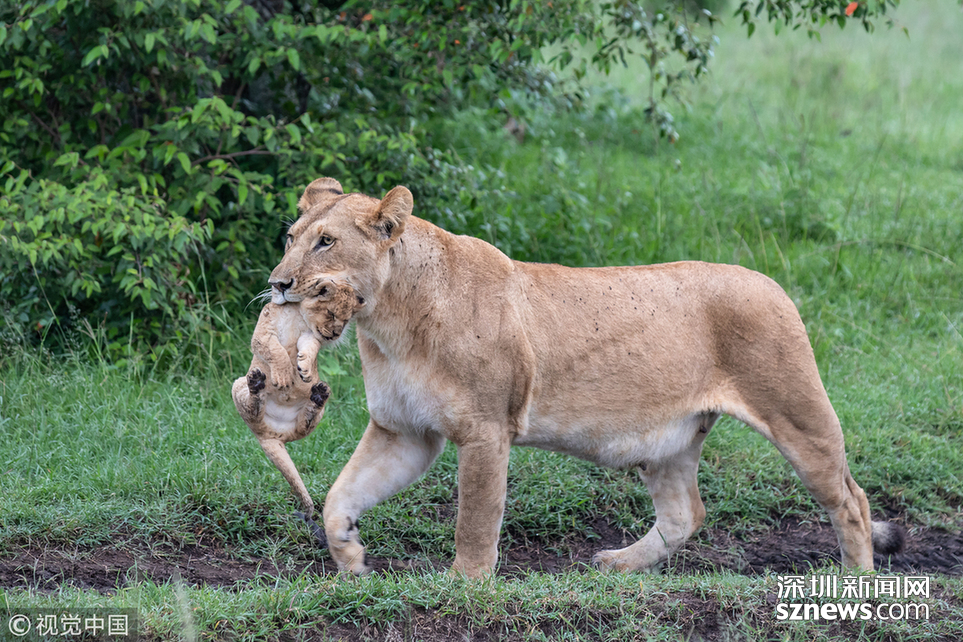 英國野生動物攝影師Paul Goldstein在肯尼亞的馬賽馬拉拍到了一頭小獅子被媽媽教訓的場面。畫面中,小獅子正歡快地在草叢穿行,任憑媽媽喚了幾次都無動于衷。為了把小獅子帶到安全地帶,母獅咬住小獅子的頸部,霸氣地將其叼在嘴巴里,小獅子一下安分起來,任由母獅帶著活動。Paul說:“把人類的情感和表達方式加給動物是不對的,但毫無疑問,這位母親對小獅子的調(diào)皮很不滿意。它喚了幾次,幼崽都拒絕服從它的命令。這個地方前一晚下了雨,母獅一天的大部分時間都會盯緊自己的孩子,避免它們遭遇危險,而一直呆在潮濕的灌木叢中,又是這些小家伙不喜歡的。最終,母獅走向小獅子,直接叼起來放回了灌木叢里。”