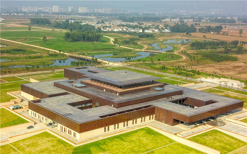 這是二里頭夏都遺址博物館(2019年10月19日攝,無人機(jī)照片)。新華社記者李安攝