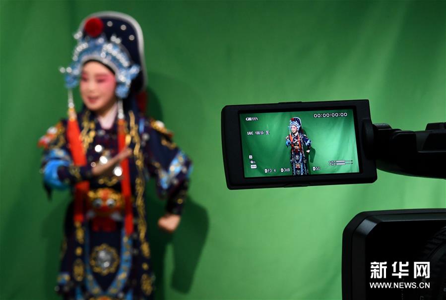 3月3日,李金玲在鄭州文化館通過直播的形式進(jìn)行帶妝表演豫劇《花木蘭》選段。李金玲是鄭州工程技術(shù)學(xué)院音樂舞蹈學(xué)院的教授,也是豫劇常派弟子。14歲開始學(xué)習(xí)豫劇的她師從豫劇大師常香玉的次女陳小香。多年來,除了本職工作教學(xué)外,她還作為文化志愿者,到各地義務(wù)表演、授課,致力于豫劇的傳承與發(fā)展。疫情防控期間,鄭州文化館展開線上文藝戰(zhàn)“疫”,開通網(wǎng)絡(luò)直播平臺(tái),李金玲也作為志愿者走進(jìn)“直播間”,進(jìn)行帶妝表演和教學(xué),精彩的“云”上表演吸引了不少戲迷的關(guān)注?!霸谶@個(gè)特殊時(shí)期,通過直播的形式為大家表演,希望可以讓更多的人喜歡和了解豫劇,感受它獨(dú)特的魅力。”李金玲說。新華社記者 李安 攝