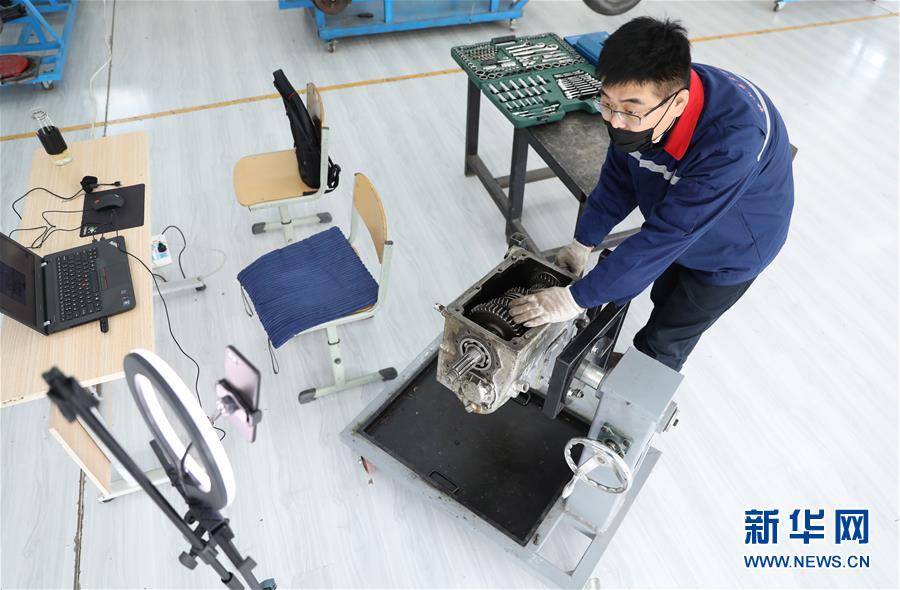 3月4日,職教城內(nèi)的鞍山市交通運輸學校的高峰老師為學生進行變速器檢修實訓網(wǎng)絡(luò)授課。遼寧省鞍山市職教城內(nèi)的各類職業(yè)教育學校從3月2日恢復網(wǎng)絡(luò)授課以來,教師們設(shè)置了豐富多彩的課程,提高1萬余名學生線上學習的積極性。新華社記者姚劍鋒 攝