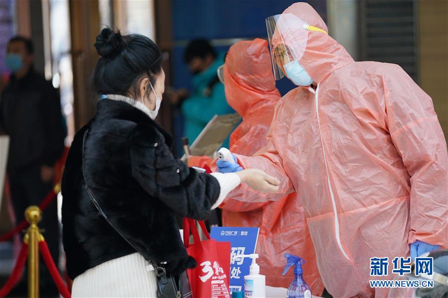 3月13日,在哈爾濱香坊萬達(dá)廣場(chǎng)內(nèi),工作人員在給進(jìn)店顧客測(cè)體溫。 近日,哈爾濱市多家大型商場(chǎng)陸續(xù)恢復(fù)營(yíng)業(yè)。這些恢復(fù)營(yíng)業(yè)的商場(chǎng)采取多種措施,從嚴(yán)細(xì)致做好疫情防控和安全風(fēng)險(xiǎn)防范工作,為廣大顧客提供安全放心的購物空間。 新華社記者 王建威 攝