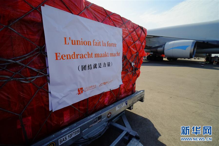 來(lái)自中國(guó)的30萬(wàn)只口罩當(dāng)?shù)貢r(shí)間16日中午運(yùn)抵比利時(shí)列日機(jī)場(chǎng)。 新華社記者 張鋮 攝