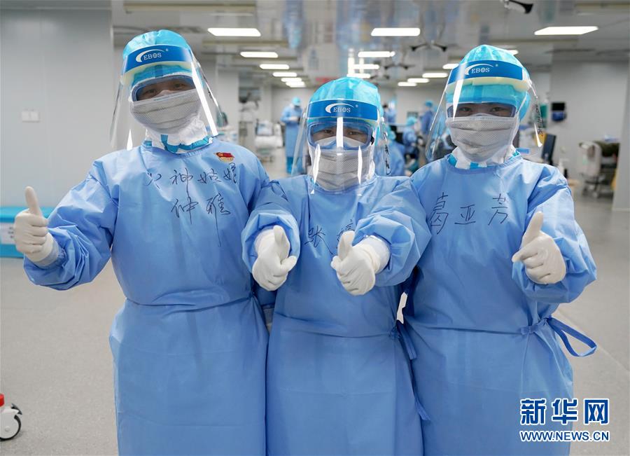 護(hù)士們合影為武漢加油(3月20日攝)。 武漢火神山醫(yī)院重癥醫(yī)學(xué)一科的護(hù)理團(tuán)隊(duì)共50名護(hù)士,其中絕大多數(shù)是80后、90后女性,她們不懼危險(xiǎn),奮戰(zhàn)在抗擊疫情的最前沿“紅區(qū)”。 新華社記者王毓國(guó)攝