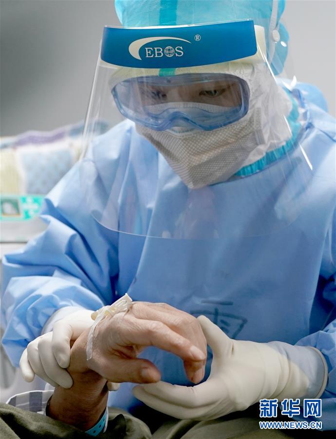90后護(hù)士文雯在進(jìn)行輸液前檢查留置針情況(3月20日攝)。 武漢火神山醫(yī)院重癥醫(yī)學(xué)一科的護(hù)理團(tuán)隊(duì)共50名護(hù)士,其中絕大多數(shù)是80后、90后女性,她們不懼危險(xiǎn),奮戰(zhàn)在抗擊疫情的最前沿“紅區(qū)”。 新華社記者王毓國(guó)攝