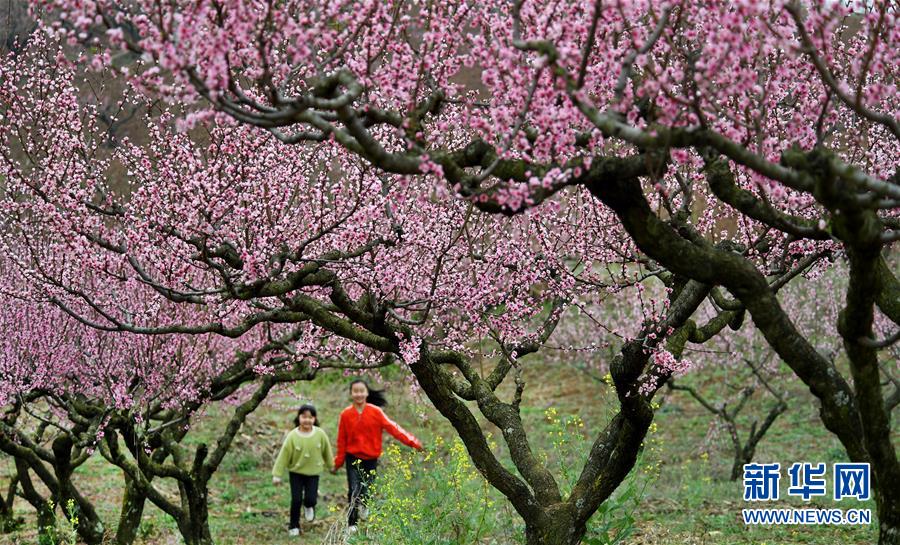 3月22日,兩位小朋友穿行在柳山湖畔盛開(kāi)的桃花叢中。陽(yáng)春三月,陜西省漢中市洋縣龍亭鎮(zhèn)柳山村,1300畝桃園的花朵綻放。新華社記者陶明攝