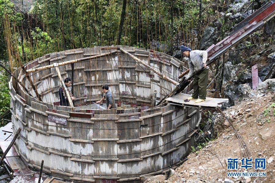 廣西都安瑤族自治縣隆福鄉(xiāng)的村民在修建家庭水柜(3月17日攝)。廣西有近一半貧困人口生活在石漠化地區(qū),涉及數(shù)十個縣區(qū)。這里也是廣西飲水保障程度最低的地區(qū),解決貧困人口飲水問題是廣西脫貧攻堅戰(zhàn)“硬仗中的硬仗”?!笆濉币詠恚瑥V西加快實施農(nóng)村飲水安全鞏固提升工程。因地制宜,采取新建、擴建及管網(wǎng)延伸等多種措施,補齊貧困地區(qū)水利薄弱短板,進一步提升石漠化地區(qū)群眾飲水安全保障水平,助推脫貧攻堅。新華社記者曹祎銘攝