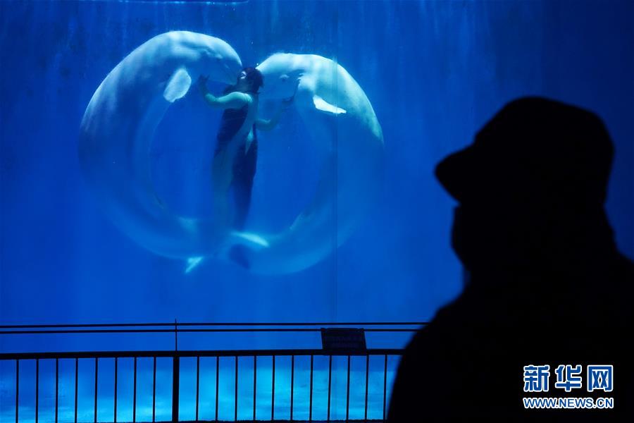 3月23日,游客在哈爾濱極地館觀賞白鯨表演。當(dāng)日,哈爾濱極地館恢復(fù)營(yíng)業(yè)。目前,極地館日接待人數(shù)不超過(guò)400人,園區(qū)采取分時(shí)段、間隔性辦法安排游客有序入園。游客實(shí)名預(yù)訂門票,入園要配合測(cè)溫、佩戴口罩、掃描“龍江健康碼”,刷身份證入館。新華社記者王建威攝