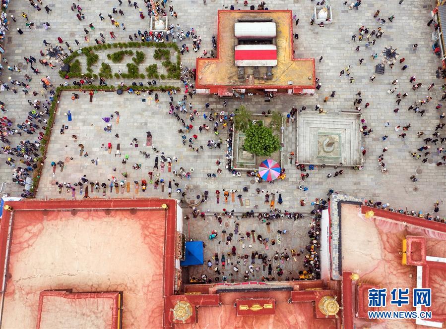 8月10日無人機(jī)拍攝的布達(dá)拉宮廣場(chǎng)一景。新華社記者王益亮攝