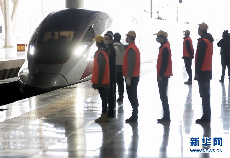 3月28日,工作人員迎來(lái)徐徐進(jìn)站的G1112次列車。新華社記者費(fèi)茂華攝