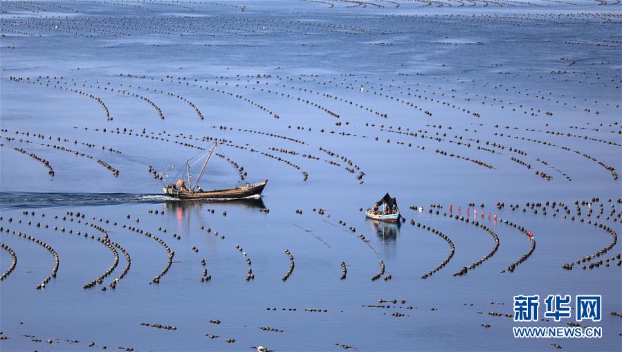 這是11月4日無人機拍攝的霞浦縣三沙鎮(zhèn)的紫菜種植區(qū)。近日,福建省霞浦縣沿海6萬畝紫菜迎來收獲季節(jié),漁民們出海收獲紫菜,海上田園一派繁忙豐收景象。新華社記者姜克紅攝