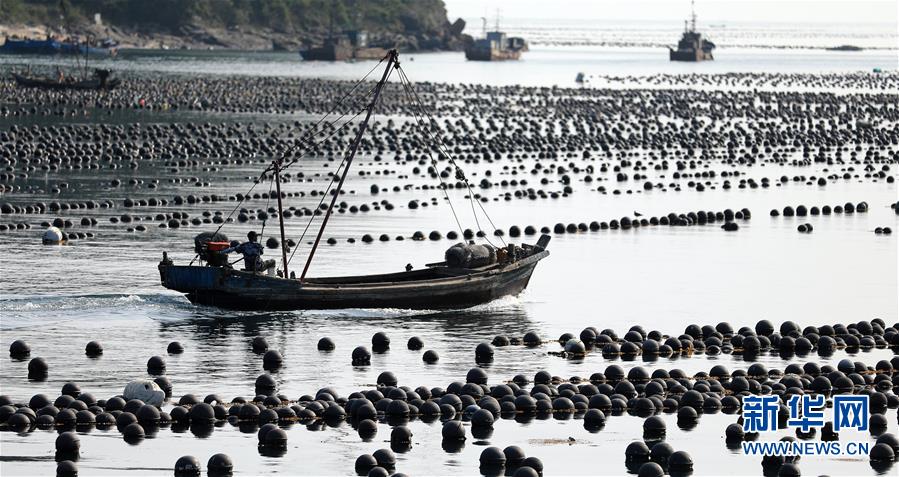 漁民在海洋牧場上工作(7月8日攝)。新華社記者姚劍鋒攝